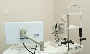 細隙灯というランプの細い光を目に当て、眼疾患の有無を確認する検査です。白内障の進行状態を詳しく観察します。