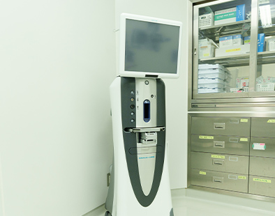 当院では、より正確で安全な診断・治療を実現するために、先端設備を導入しています。白内障手術に関しては術中の眼内圧を整え、安全で目に負担の少ない手術を可能とする「ステラリスエリ-ト」や、白内障手術の切開位置、眼内レンズの固定位置を精密にナビゲートする「ベリオン」を導入しています。また外来検査機器では広角眼底カメラや、OCT検査、OCT angiography、波面収差解析装置などの高性能検査機器を用い、正確な検査・診断を行っています。